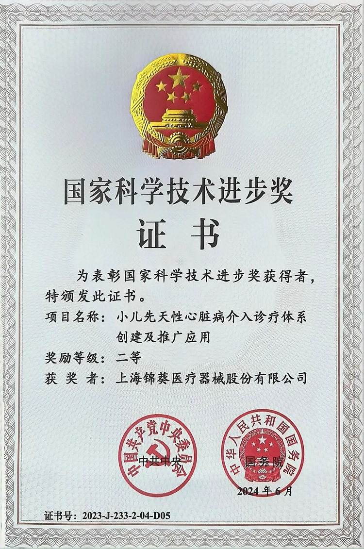 6月24日,全國科技大會(huì)、國家科學(xué)技術(shù)獎(jiǎng)勵(lì)大會(huì)、兩院院士大會(huì)在京召開。會(huì)上公布了2023年度國家科學(xué)技術(shù)獎(jiǎng)獲獎(jiǎng)名單。其中,創(chuàng)投集團(tuán)被投企業(yè)上海錦葵醫(yī)療器械股份有限公司(以下簡稱“錦葵醫(yī)療”)參與完成的“小兒先天性心臟病介入診療體系創(chuàng)建及推廣應(yīng)用”項(xiàng)目榮獲國家科學(xué)技術(shù)進(jìn)步獎(jiǎng)二等獎(jiǎng)!